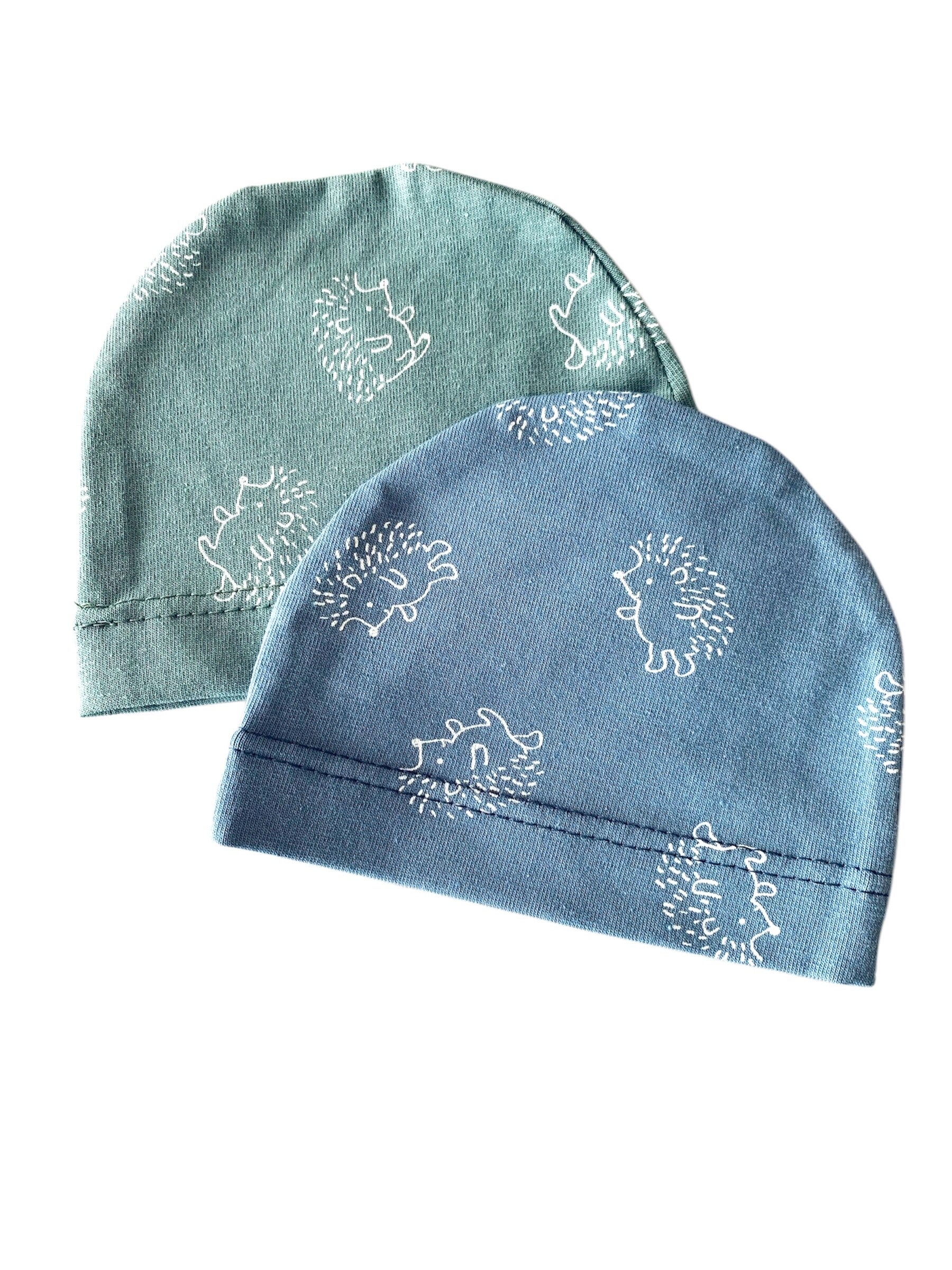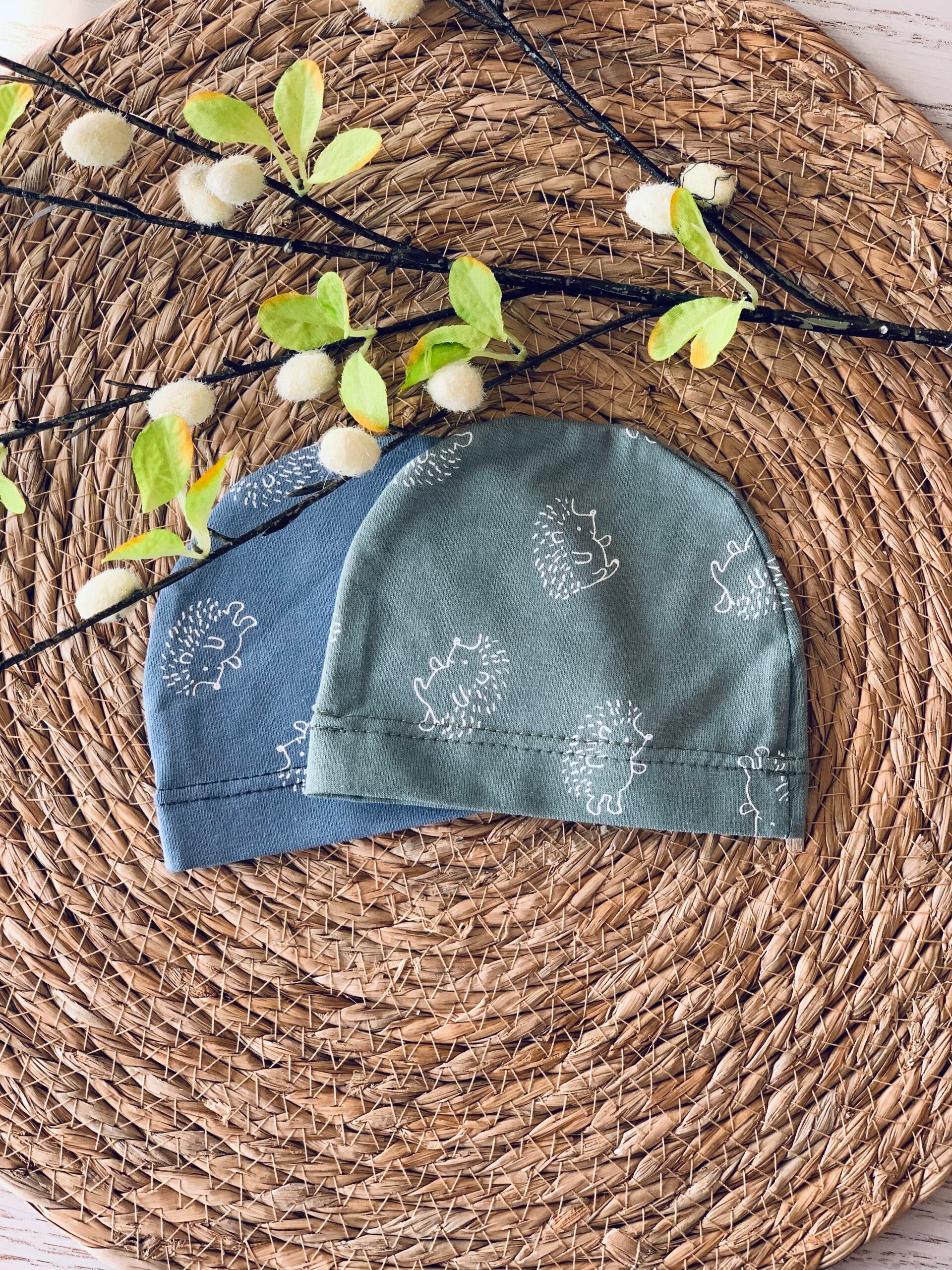 De kleurkeuze van het mutsje is een verfijnde combinatie van oud blauw en oud groen, die samen een rustige, kalmerende uitstraling creëren. Het mutsje is verder versierd met een schattige egeltjesprint, wat een speelse en lieve touch toevoegt. Deze print is subtiel, maar geeft het mutsje net dat beetje extra charme.