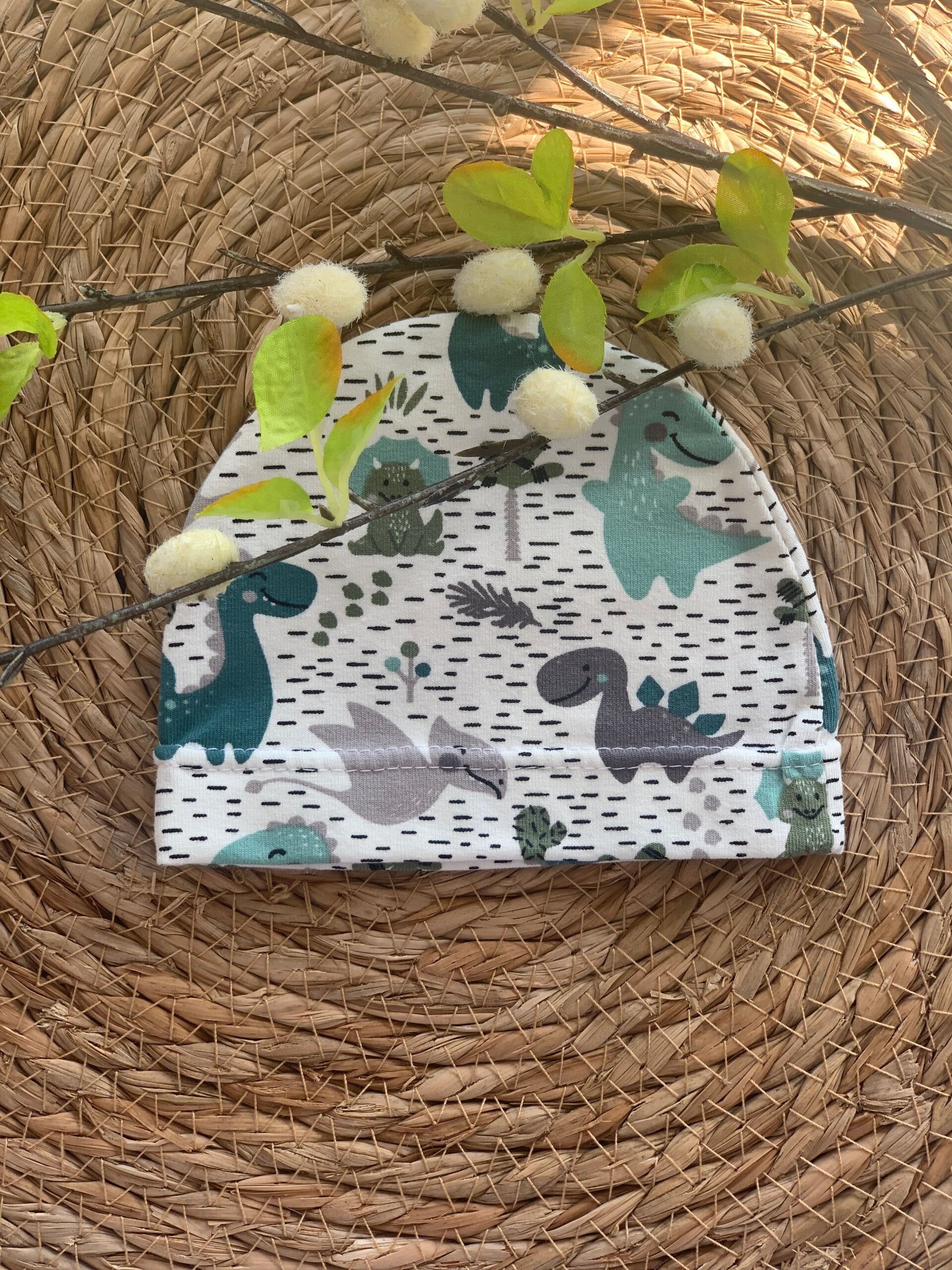 Dit stoere prematuur mutsje is perfect voor de allerkleinste dinofans! Gemaakt van zacht en rekbaar katoen tricot, biedt het mutsje een comfortabele en veilige pasvorm voor de gevoelige huid van je baby. De vrolijke dinosaurusprint maakt het een echte blikvanger, terwijl het enkel laags ontwerp zorgt voor ademend draagcomfort — ideaal voor in de couveuse of bij huid-op-huid contact.