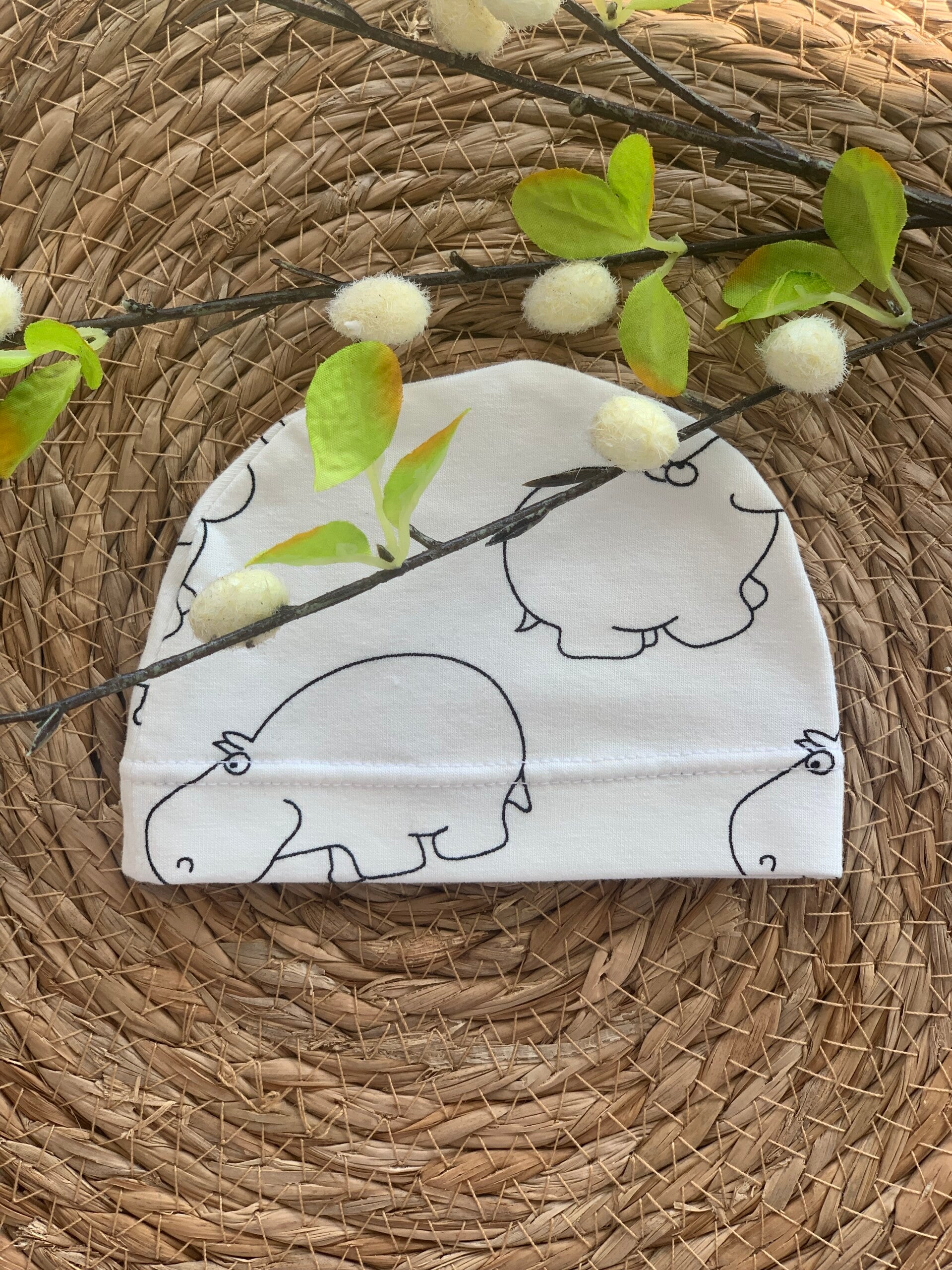 Dit schattige prematuur mutsje is perfect voor de allerkleinsten. De witte basis met een speelse print van lieve nijlpaardjes zorgt voor een frisse en vrolijke uitstraling. Gemaakt van zacht, ademend katoen tricot, biedt dit enkel laags mutsje een comfortabele en veilige pasvorm voor de gevoelige huid van je baby. Ideaal voor in de couveuse of tijdens knuffelmomentjes.