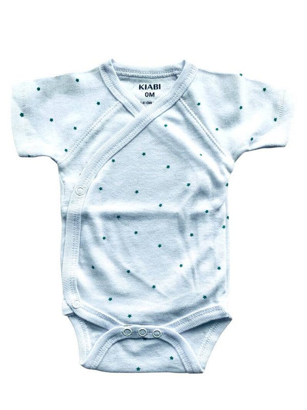 Overslag romper katoen – wit met zwarte of groene sterretjes