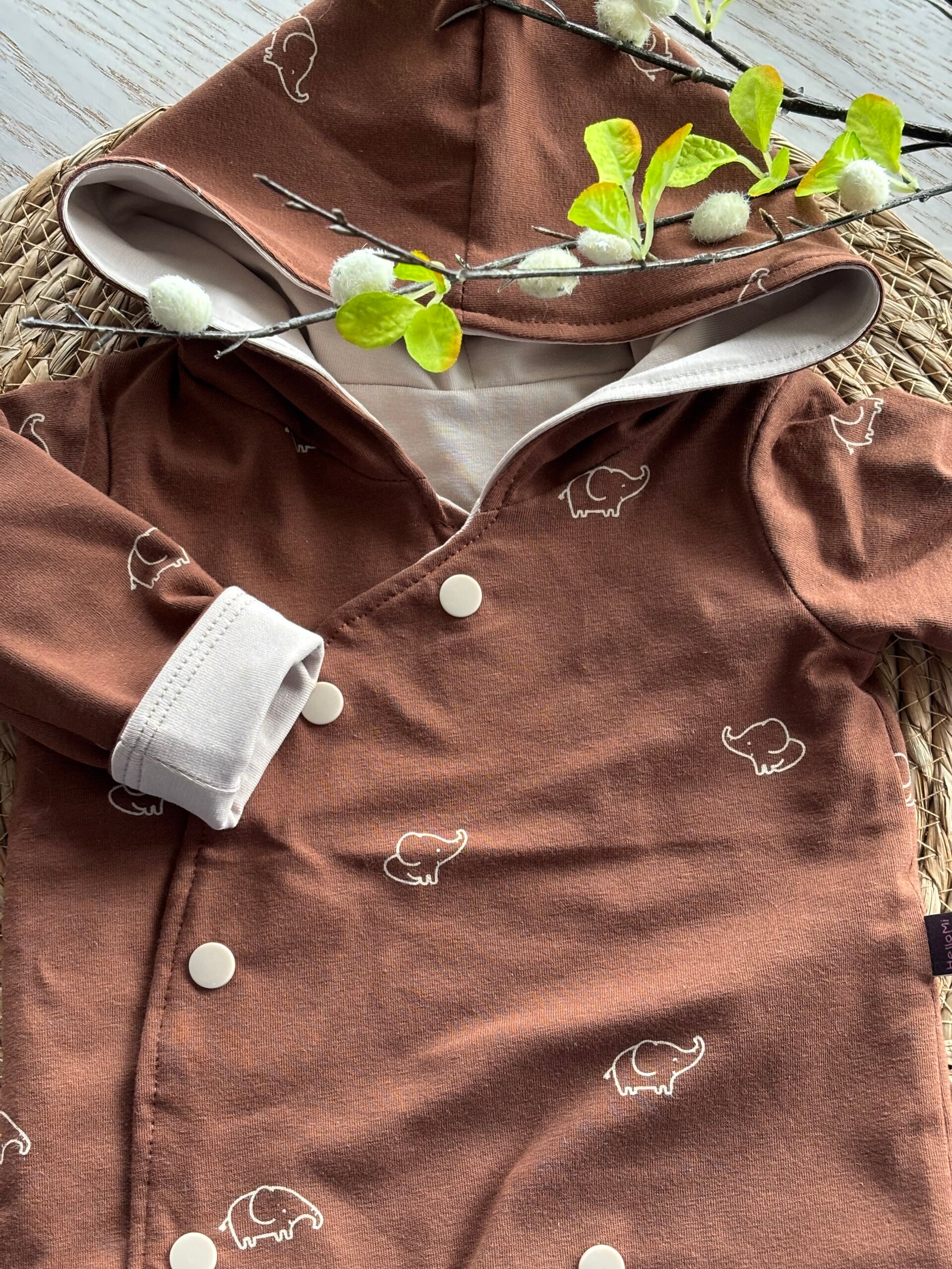 Prematuur Jasje – Bruin met Beige Olifantjes Print